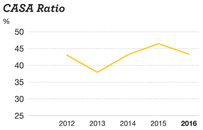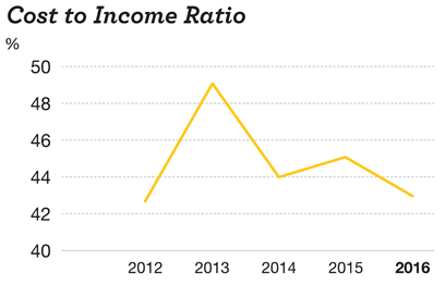 Gross NPA ratio which is calculated as per regulatory norms stood at 2.9% at the end of 2016 compared to 4.3% recorded as at 31 December 2015, bringing down the NPA ratio to industry level.