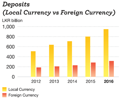 Loan growth of 21% is a rewarding growth considering the challenges that prevailed in the industry by way of high interest rates, low liquidity position and competitive pressure through innovative product strategies, etc. Personal loans, term loans and overdrafts contributed mostly to the growth momentum in the loan portfolio. Many process developments deployed in the recent past bore fruits as evident from the continuing growth momentum. The Bank’s strategy of maintaining an optimum mix exposure between private and Government portfolios resulted in a reduction in its Government exposure from 40% to 30% by end 2016.