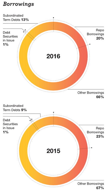 Borrowings of the Bank reduced by LKR 79.5 billion during the year which is 21% drop compared to previous year. This decline was reported mainly from the REPO borrowings and term borrowings from overseas banks.