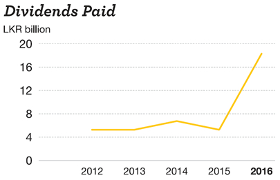 During the year 2016, the Bank has paid a significant dividend amount of LKR 17.3 billion to its sole shareholder, the Government of Sri Lanka which is an increase of LKR 11.0 billion from the year 2015. The Bank has identified its responsibility towards the nation’s development and being the No. 1 Bank in the Country has supported the Government initiatives.