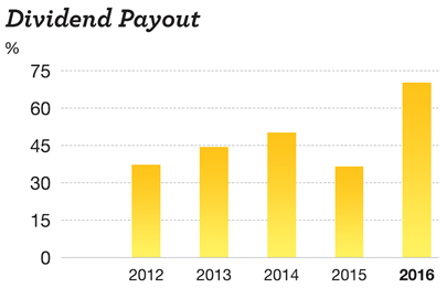 The dividend payout ratio for the year 2016, stood at 70%, whereas the same is 36% for the previous year. This denotes the Bank’s contribution towards the Government for its growth momentum.