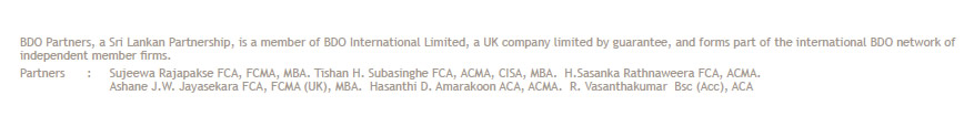 This Report is made solely to the Bank in accordance with our engagement letter dated 2 March 2017. We disclaim any assumption of responsibility for any reliance on this Report to any person other than the Bank or for any purpose other than that for which it was prepared. In conducting our engagement, we have complied with the independence requirements of the Code of Ethics for Professional Accountants issued by the CA Sri Lanka.