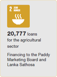 The Bank also provided financing to the Paddy Marketing Board and Lanka Sathosa which are key links in the food supply chain and thereby contributed to ensuring food security in the country.