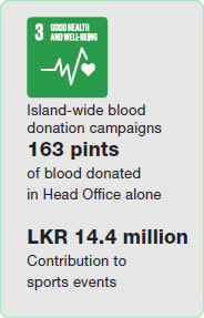 BoC made major contributions to this goal through the loans to the health sector to facilitate continuance and expansion of health services. In addition, island-wide blood donation campaigns were conducted concurrently with the 77th anniversary of the Bank. The head office alone donated 163 pints of blood.