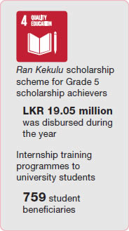 The Bank’s programmes under this goal are tailored to broadening access to education which will promote equality of opportunity and social mobility. The Ran Kekulu scholarship scheme for Grade 5 scholarship achievers is a major initiative to help students move up the ladder.