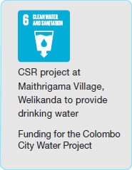 As a contribution at the grass roots level, a CSR project was conducted at Maithrigama Village, Welikanda to provide water to the local residents through tube wells. Contributions to provision of safe drinking water were also made by loan facilities granted to private institutions to producing bottled drinking water.