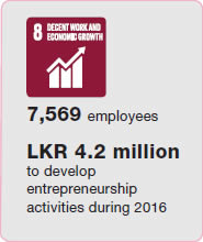 In addition, a large number of jobs have been created through our lending facilities, especially our lending to the SME sector which generates much employment in the rural sector. A total of LKR 4.2 million was spent on CSR to develop entrepreneurship activities during 2016.