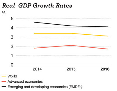 The global economy achieved a moderately satisfactory performance in 2016 with an estimated growth of 3.1%, albeit one that showed much variation between regions. The advanced economies did somewhat better than expected, with the US especially achieving near full employment by the end of the year. However, the European Union as a whole did not do too well, though one exception was the UK economy in the aftermath of the Brexit vote.
