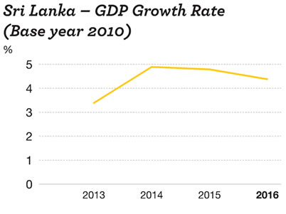 A growth rate of 6.3% is expected for 2017 bolstered by growth in the areas of tourism, financial services, transport, telecommunication and ports. Growth is expected to be driven by the proposed special economic zone in Hambantota, the Colombo International Financial City and the Megapolis in the Western Province.