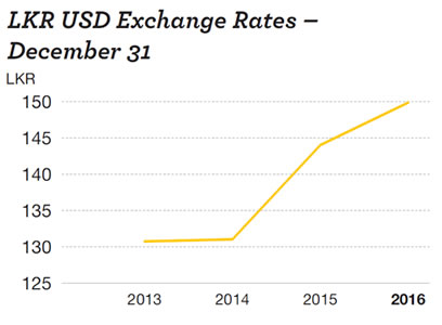 The performance of the Sri Lankan economy was somewhat dampened during the year, with a growth of only 4.4% for 2016 as against an annual growth of 4.8% in 2015. The agricultural sector suffered a contraction in the first part of the year; however the industrial and service sectors grew by 6.7% and 4.2% respectively. Despite some upward pressures due to adverse weather and Government tax policy inflation was moderate during the year. Inflation on an average annual basis was 4.0% in December 2016. Overseas workers’ remittances recorded an increase of 3.7% over the previous year. Tourism continued to perform well as it did in the previous year.