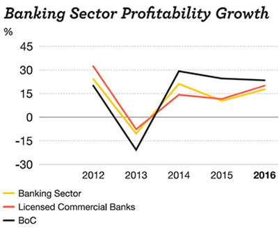 The banking sector recorded over LKR 700 billion in capital funds, over LKR 2.3 trillion in total investments and over LKR 100 billion in profits in 2016.